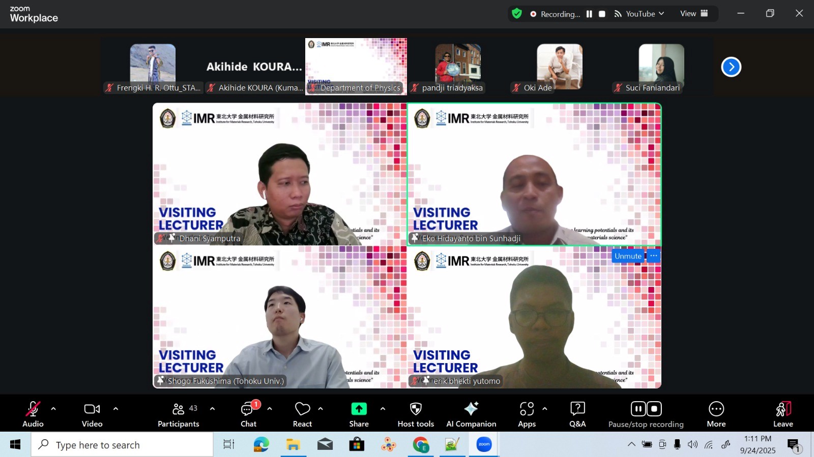 Strengthening International Networking: Department of Physics, Faculty of Science and Mathematics, Diponegoro University Invites Assist. Prof. Shogo Fukushima in Visiting Professor Program