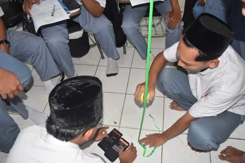 The activity began with an introduction to the Phyphox application by Dhani Nur Indra Syamputra, S.Si., M.Sc. Phyphox offers a practical solution for physics education by utilizing sensors embedded in smartphones. During the session, students at MA Qudsiyyah had the opportunity to try physics experiments firsthand using the application. The practicum involved calculating the coefficient of restitution of an object by dropping a ball onto the floor and measuring the rebound height.