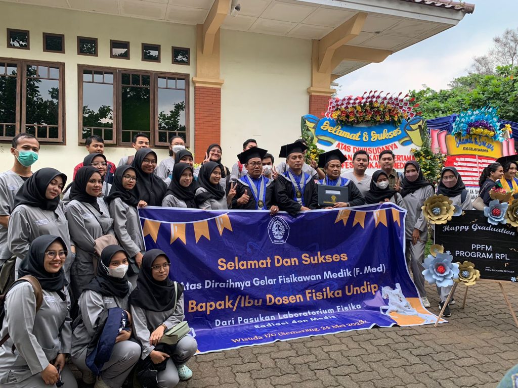 Alhamdulillah, conveyed by the Head of the Department of Physics at UNDIP, Prof. Dr. Heri Sutanto, S.Si., F.Med., M.Si., after completing the graduation ceremony for the first-ever Medical Physicist Professional on May 24, 2023, at the Prof. Soedarto Building, UNDIP Tembalang Semarang.