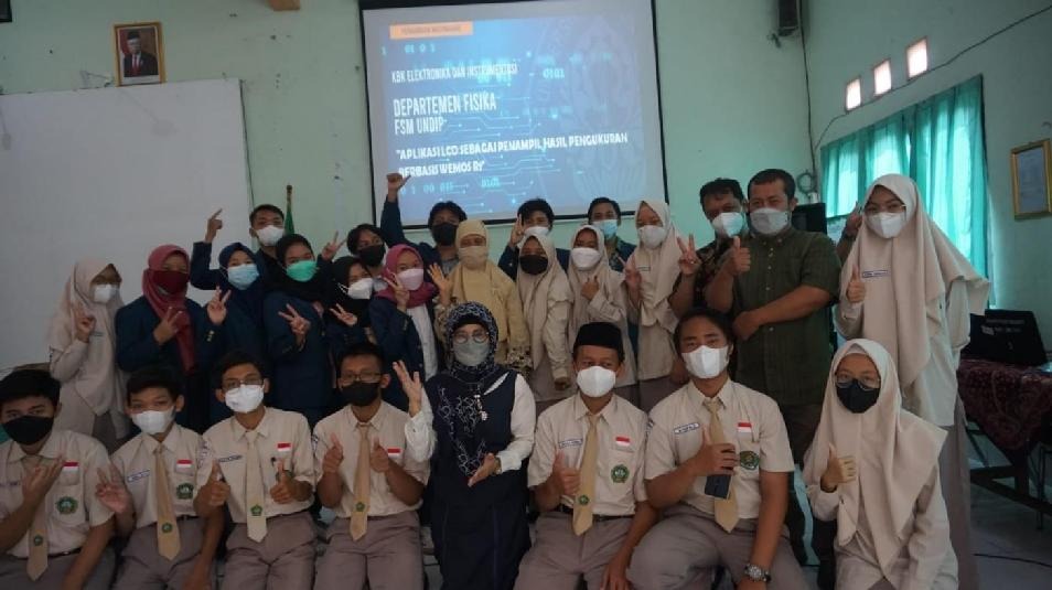 Pelaksanaan pembuatan alat ukur Suhu Dan Kelembaban Udara berbasis Wemos D1 untuk menunjang ekperimen fisika di Madrasah Aliyah Negeri 1 Kota Semarang.seksi pertama disampaikan oleh Dr. Sumariyah, M.Si. Pada awal pertemuan diperkenalkan para anggota tim pengabdian masyarakat dan juga perkenalan dari perwakilan siswa-siswi SMK Sepuluh November Sendang Mulyo Tembalang Semarang. Dilanjutkan dengan ceramah pengenalan sekilas elektronika digital. Sebagian besar materi siswa-siswi sudah mengerti, tinggal memicu untuk pengemangannya dengan memberikan contoh-contoh riil didalam kehidupan sehari-hari. Pelaksanaan pengenalan mikroprosesor Wemos D1 seksi kedua disampaikan oleh Bapak Dr. Suryono SSi, MSi. Beliau disamping mereview materi pada pembicara pertama juga menambah materi-materi yang terselip. Disamping ceramah Bapak Dr. Suryono SSi, MSi melakukan demonstrasi/eksperimen pada hamper semua tema pembelajaran Hasil kegiatan pembuatan alat ukur Suhu Dan Kelembaban Udara berbasis Wemos D1 untuk menunjang ekperimen fisika di Madrasah Aliyah Negeri 1 Kota Semarang secara umum telah sesuai dengan tujuan yang dikehendaki, yaitu memberikan wawasan, informasi dan diskusi. Keberhasilan penyampaian materi maupun eksperimen yg telah disampaikan kepada para peserta dilihat dari animo dan keaktifan peserta dari dalam menyampaikan pertanyaan dan diskusi. Dalam kondisi tersebut muncul diskusi bersama untuk mensinergikan potensi dari masing-masing peserta dan civitas akademika Undip yaitu pada kesempatan yang akan dating para peserta akan melakukan kunjungan ke laboratorium-laboratorium yang ada di Fisika. Manfaat lain adalah memotivasi seluruh peserta untuk belajar dan terus belajar hingga ke universitas.