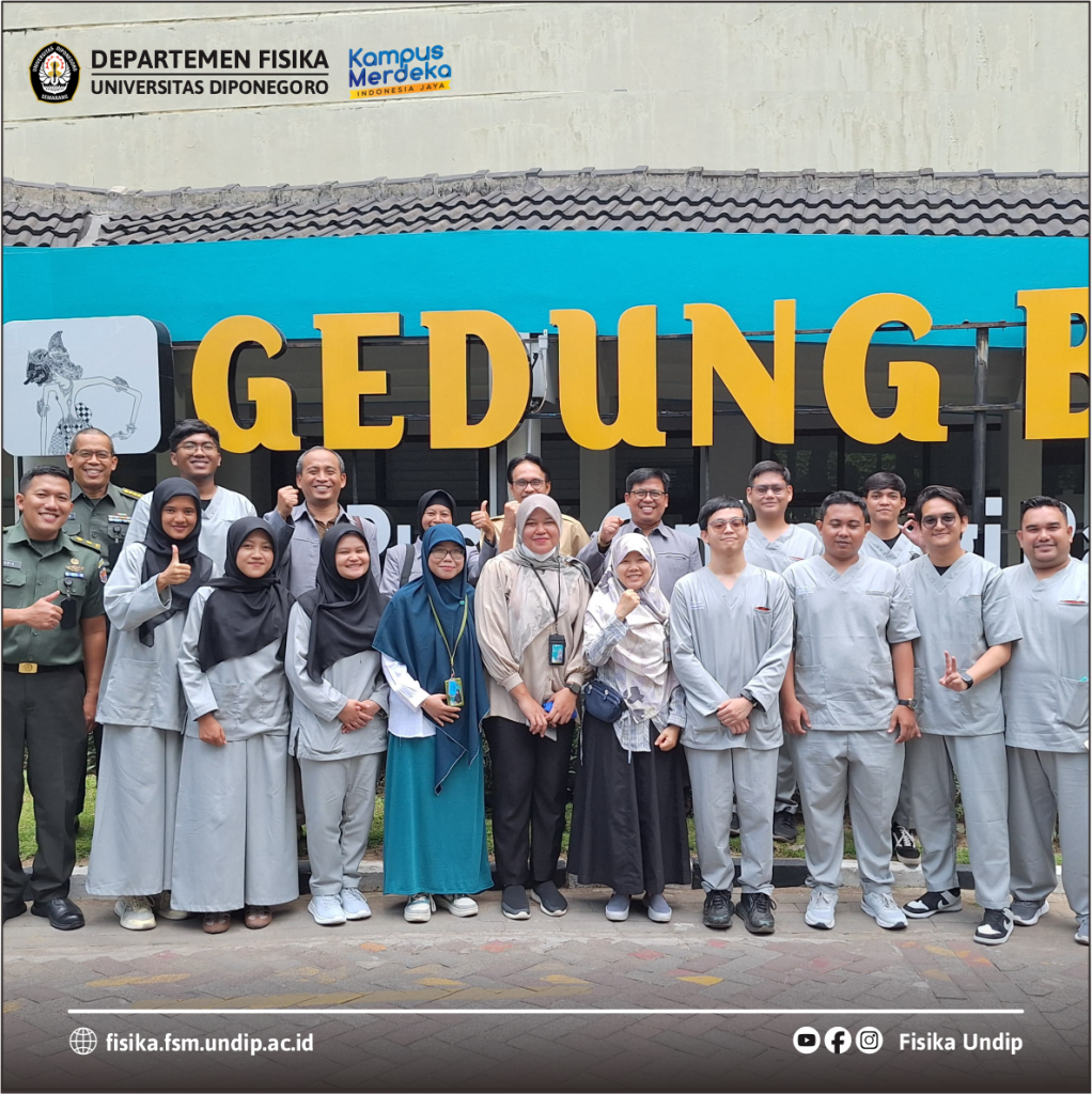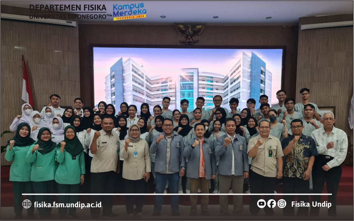 Semarang, 7 Oktober 2024 Program Studi Profesi Fisikawan Medik UNDIP menempatkan 24 mahasiswa di RSUP Kariadi Semarang dan 11 mahasiswa di RSUP Sardjito Yogyakarta. Penempatan mahasiswa di rumah sakit merupakan bagian pembelajaran praktik di rumah sakit untuk memenuhi kemampauan ketrampilan kilinis merujuk pada standar profesi Keputusan Menteri Kesehatan No 322 Tahun 2020 dengan kemampuan area kompteensi yang akan dicapai antara lain 1. Profesionalitas yang Luhur; 2. Mawas Diri dan Pengembangan Diri; 3. Komunikasi Efektif; 4. Pengelolaan Informasi; 5. Landasan Ilmiah Ilmu Fisika dan Aplikasinya untuk Medik; 6. Keterampilan Klinis Fisika Medis; dan 7. Pengelolaan Pengujian dan Kalibrasi Alat Radiasi Medis Pengion dan Non Pengion.